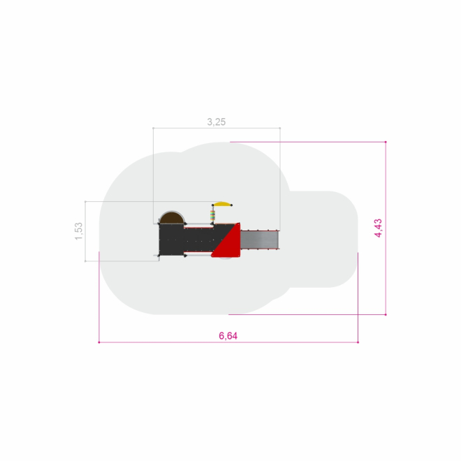 Conçu pour les enfants dès 1 an, ce module respecte les normes de sécurité strictes avec une hauteur de plateforme modérée et une hauteur de chute critique adaptée. La surface de chute appropriée est requise pour minimiser les risques, assurant ainsi une aire de jeu sécurisée et conforme aux attentes des parents et des collectivités.