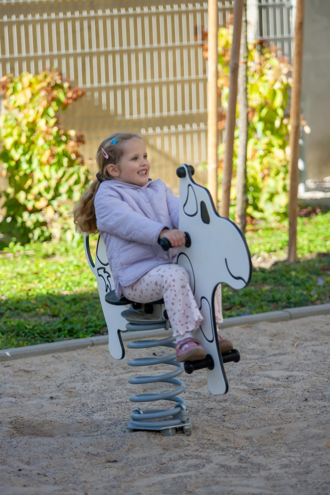 Idéal pour les parcs, jardins d’enfants et espaces publics, ce cheval à ressort stimule l’imagination et encourage l’activité physique des tout-petits. Son design attractif et ses matériaux de qualité en font un élément durable qui s’intègre parfaitement dans tout environnement de loisirs extérieur.