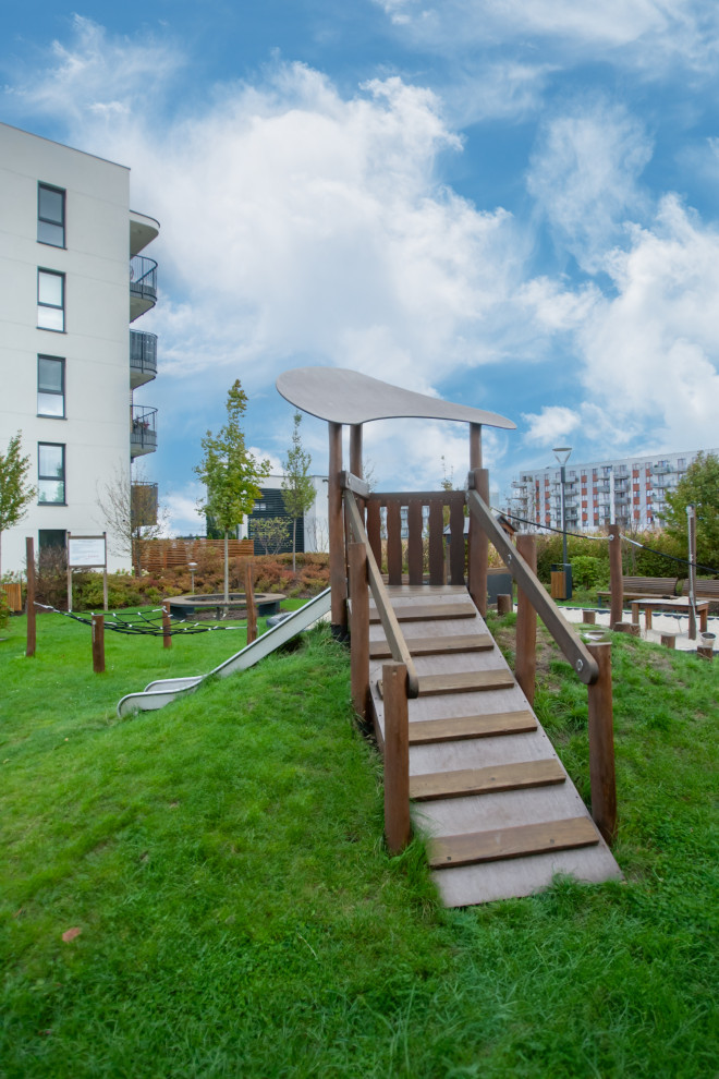 Hekla s’intègre parfaitement dans les espaces extérieurs, apportant une touche naturelle et conviviale. Son design invite à l’exploration et à l’activité physique, favorisant la socialisation et le développement des habiletés motrices des plus jeunes.