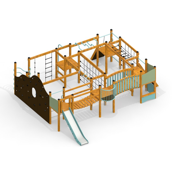 Idéale pour les parcs, écoles ou espaces publics, cette structure offre un terrain de jeu stimulant où les enfants peuvent développer leur motricité, leur équilibre et leur esprit d’équipe. Son esthétique naturelle et ses matériaux de qualité contribuent à créer un environnement accueillant et harmonieux, propice à la détente et à l’épanouissement.