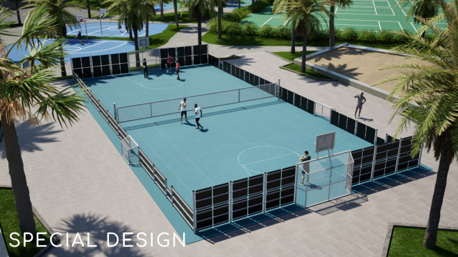 Idéal pour les zones urbaines, ce terrain polyvalent permet la pratique de plusieurs sports collectifs, favorisant ainsi l'activité physique et la cohésion sociale. Son design fonctionnel et sécurisé en fait un atout majeur pour tout projet d'aménagement sportif et récréatif.