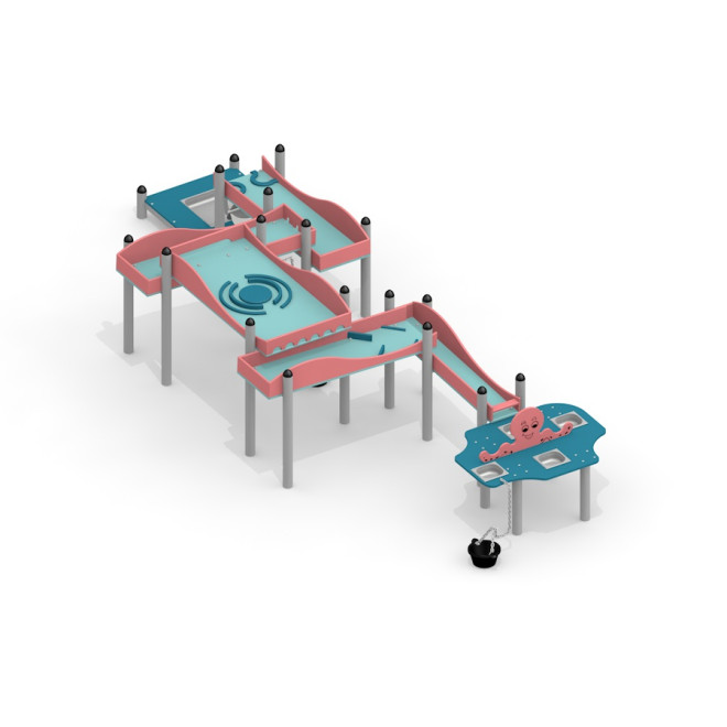 Stream s'intègre parfaitement dans les espaces de loisirs extérieurs, notamment les aires de jeux éducatives et les parcs aquatiques. Sa structure encourage la motricité fine, la coordination et la découverte sensorielle, faisant de cet équipement un choix idéal pour stimuler le développement des jeunes enfants dans un cadre ludique et convivial.